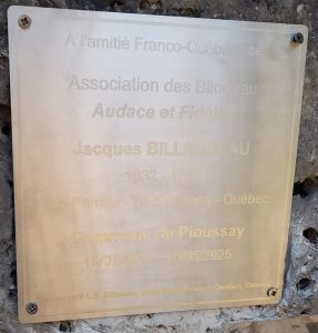 Pour le 25ième anniversaire de l’Association en 2025, en collaboration avec l’Association Les familles Gagnon et Belzil inc., un groupe de Bilodeau et de Gagnon sont retournés en France. Pour cette occasion, une plaque fabriquée par L.S. Bilodeau, a été ajoutée à celle existante datant de 2012, à la Jarge dans la Commune de Pioussay. Cette plaque souligne l’amitié Franco-québécoise et notre ancêtre Jacques Billaudeau qui est venu s’installer en Nouvelle-France.